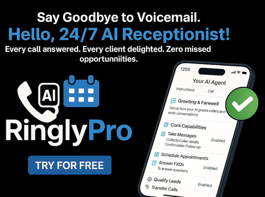 RinglyPro is an AI-powered voice booking and customer engagement platform that helps businesses automate calls, capture leads, and grow 24/7 with intelligent conversational AI.