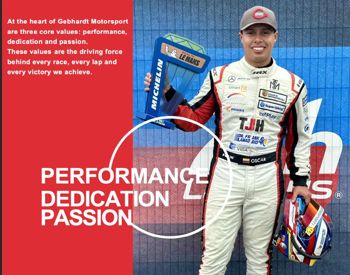 At the heart of his career are three core values: performance, dedication, and passion. These values are the driving force behind every race, every lap, and every victory achieved with Gebhardt Motorsport.
